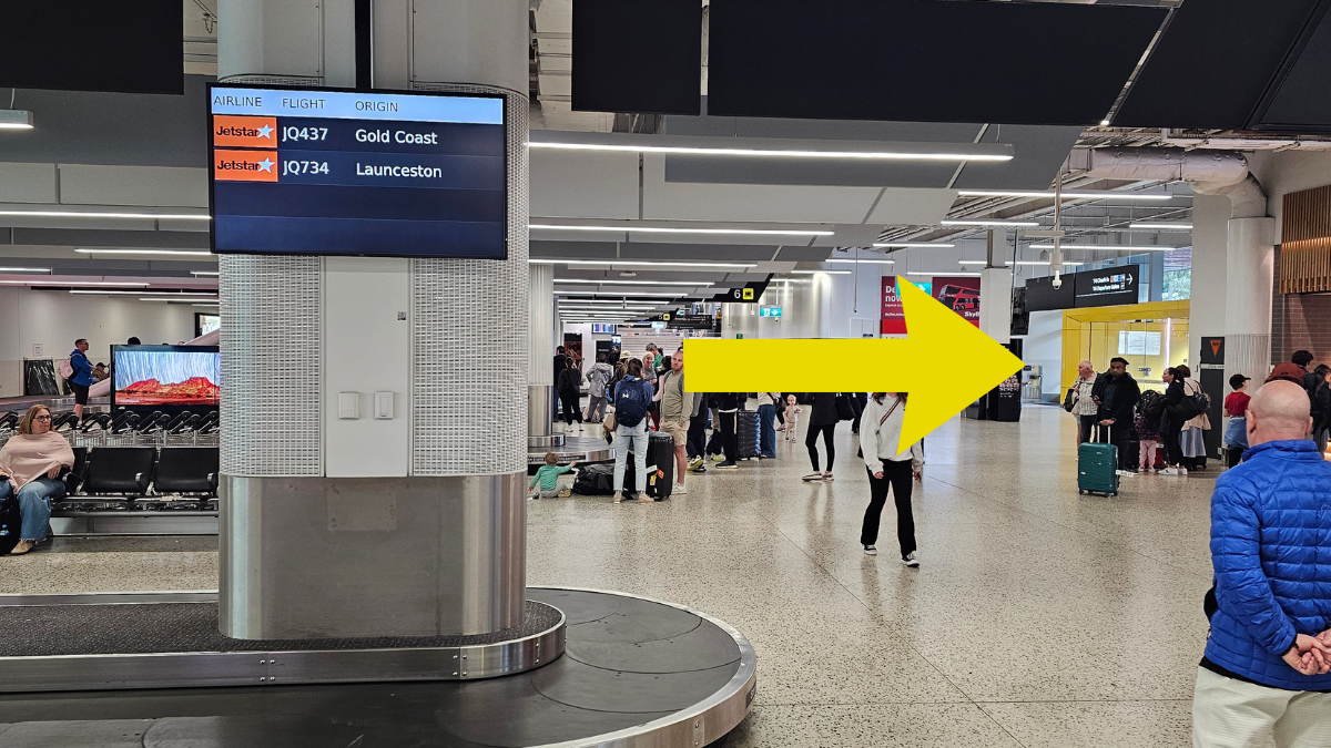 Collect your luggage and exit the terminal via the YELLOW exit on your RIGHT.