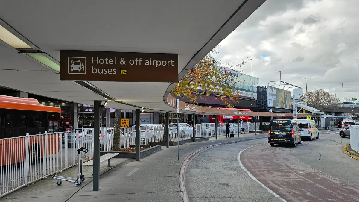 Continue straight until you’re in the brown ‘Hotel & Off-Airport‘ bus zone.