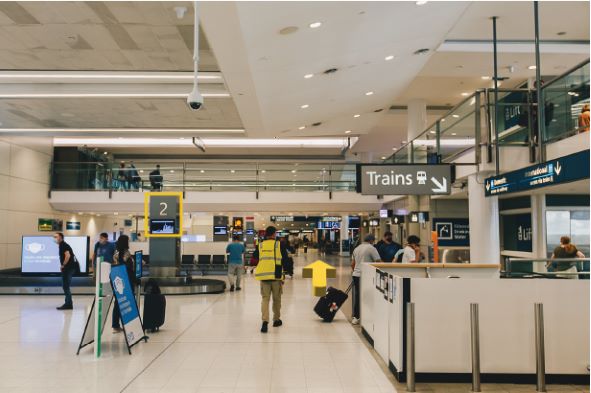 Upon exiting the aircraft follow the airport signs to the baggage claim area. You will use the escalator on your RIGHT to exit to the baggage claim. At the bottom of the escalator you will see a sign that says, “Catch Airport Link” turn RIGHT here to collect your bag here to collect your bag